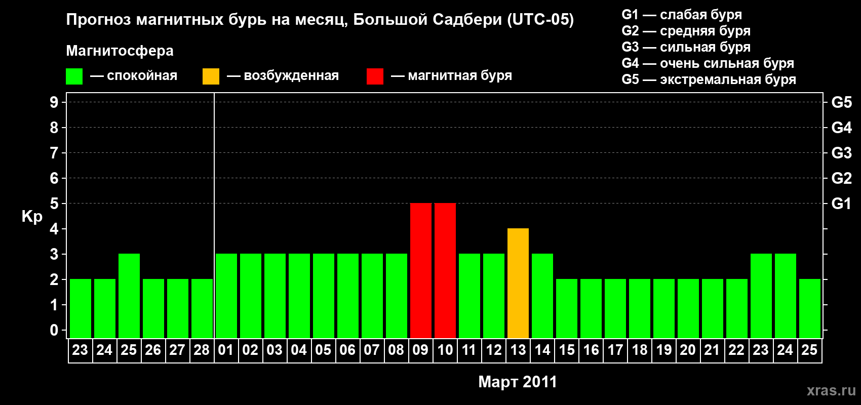 Прогноз магнитных бурь Большом Садбери — 23 февраля 2011 года