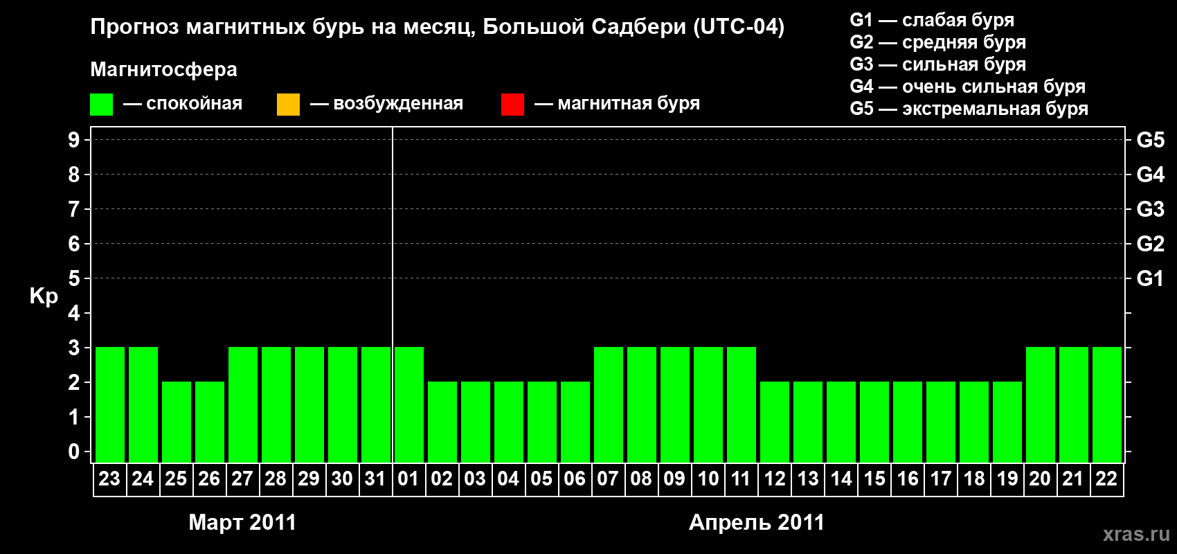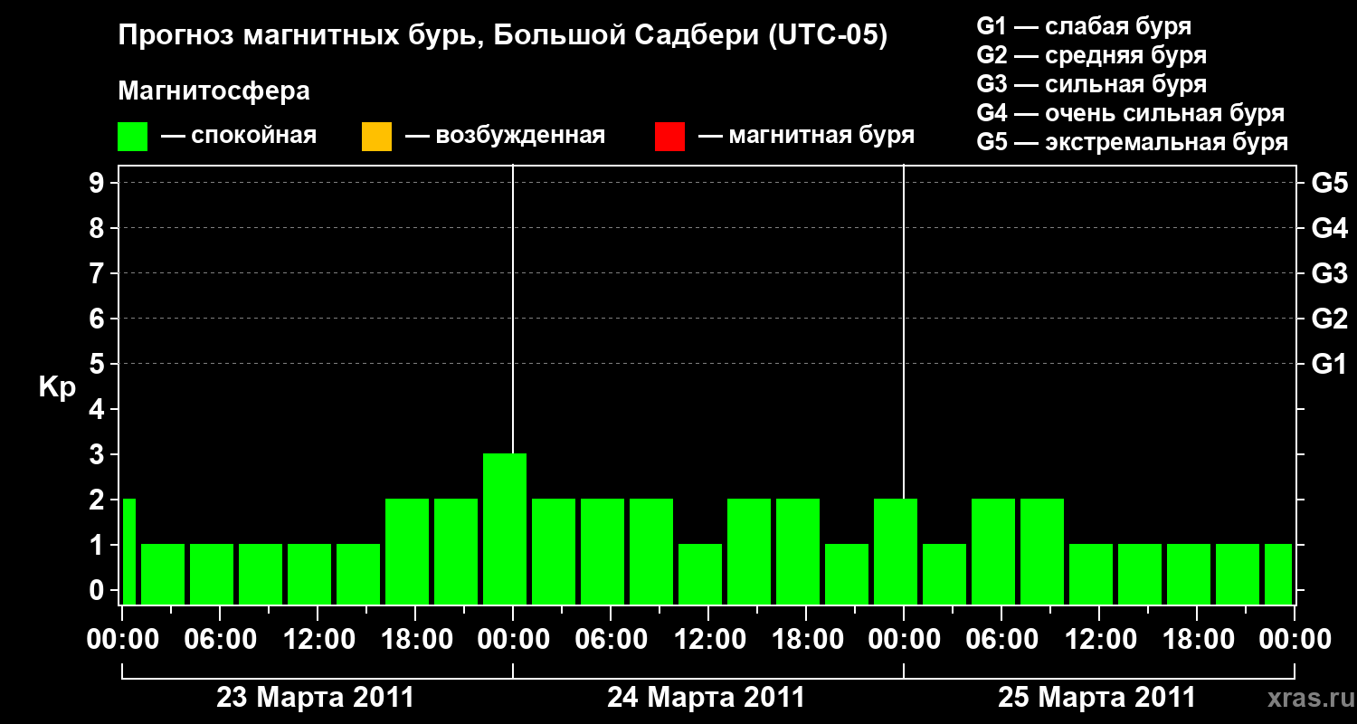 Прогноз магнитных бурь Большом Садбери — 23 марта 2011 года