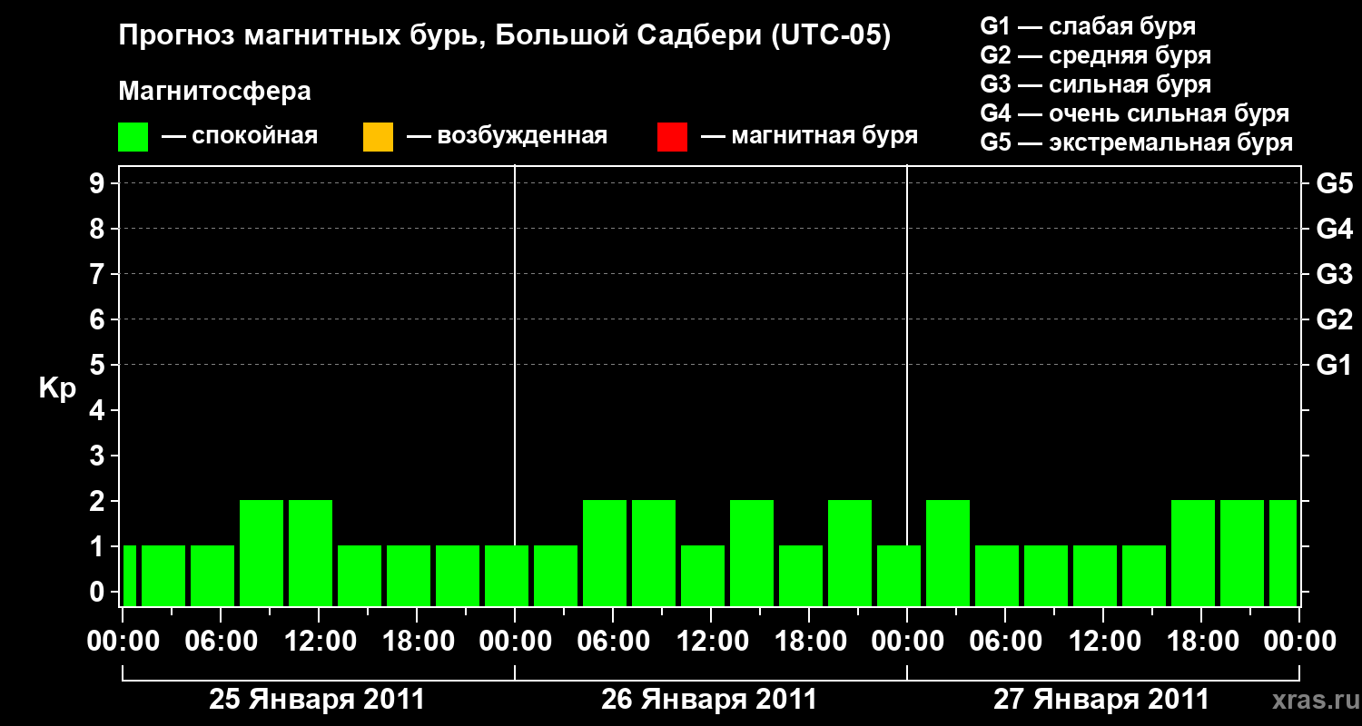 Прогноз магнитных бурь Большом Садбери — 25 января 2011 года