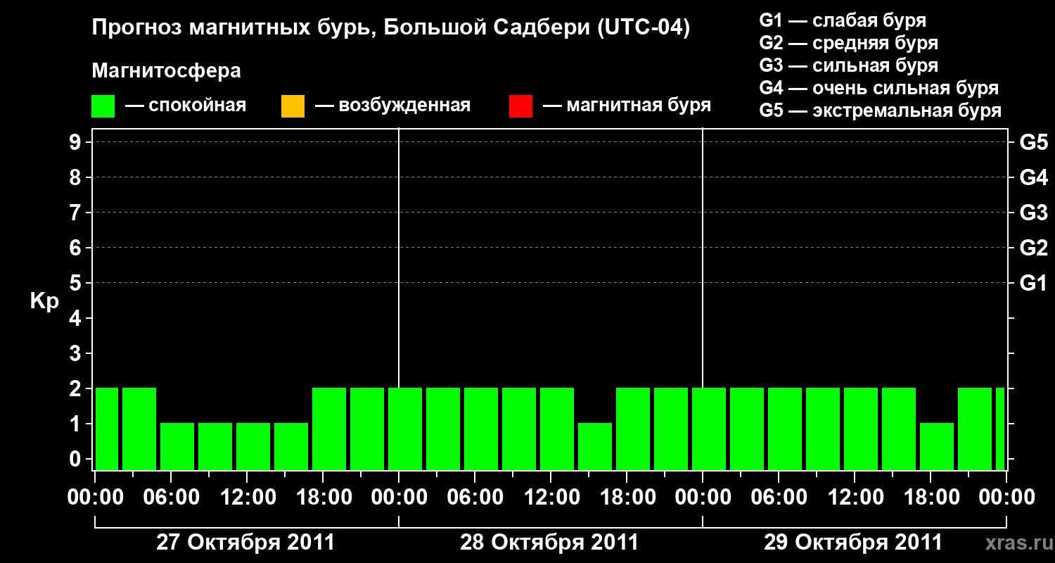 Прогноз магнитных бурь Большом Садбери — 27 октября 2011 года