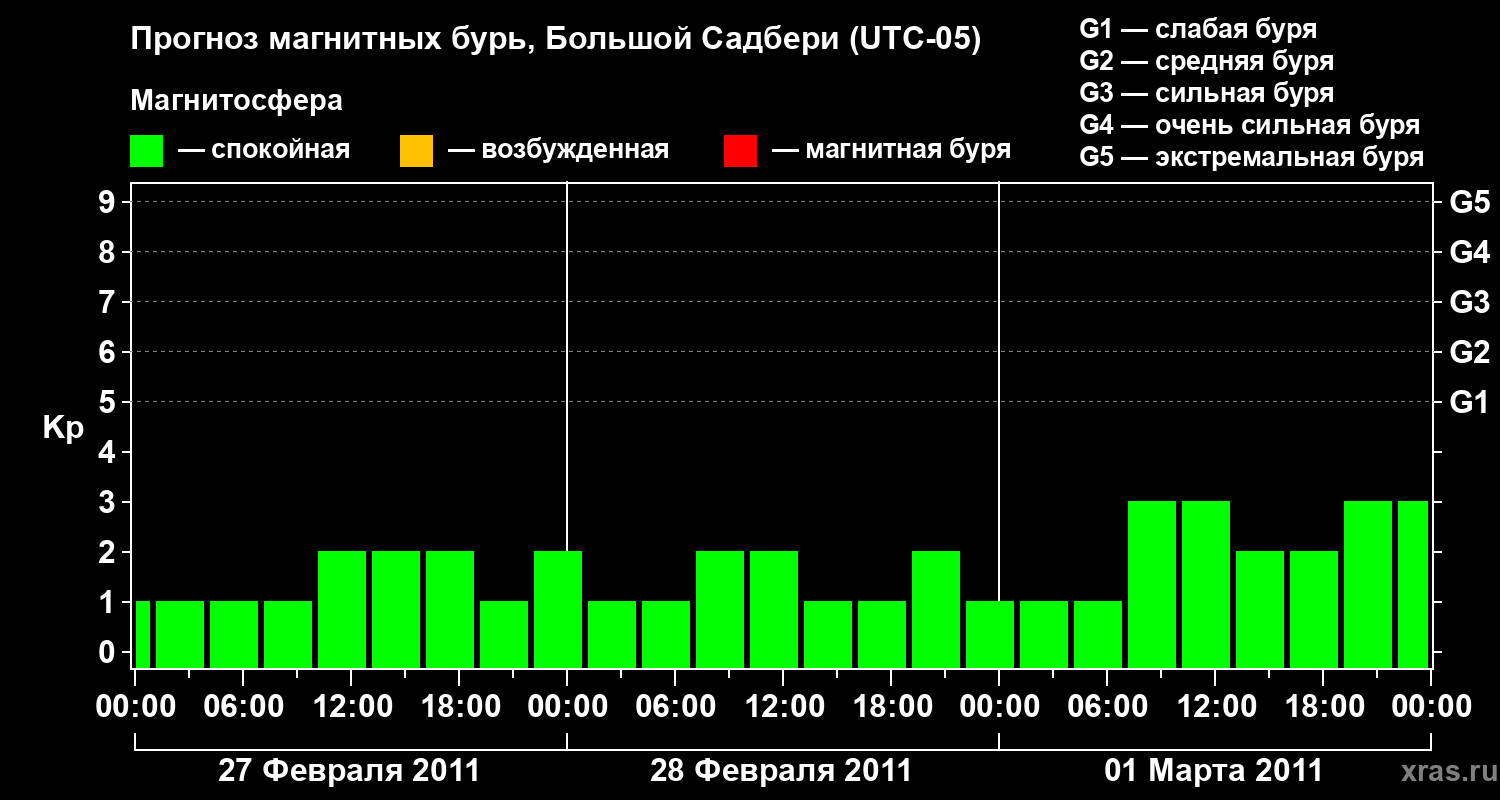 Прогноз магнитных бурь Большом Садбери — 27 февраля 2011 года