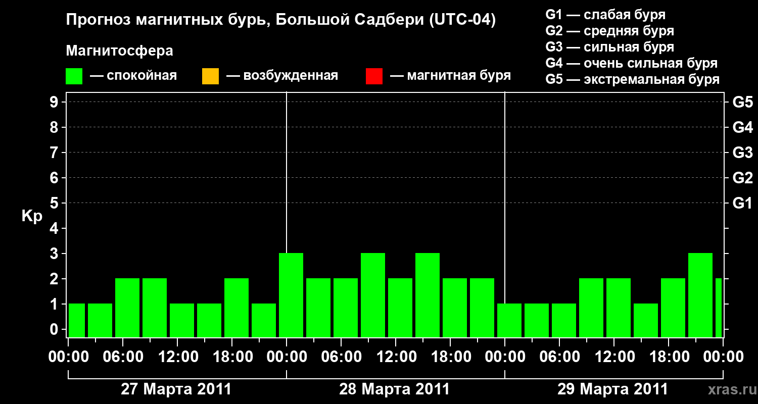 Прогноз магнитных бурь Большом Садбери — 27 марта 2011 года