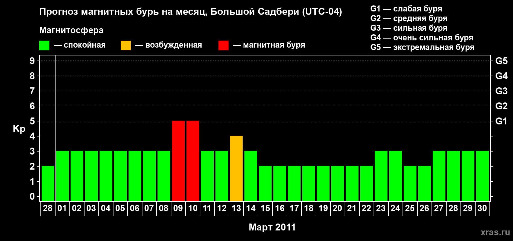 Прогноз магнитных бурь Большом Садбери — 28 февраля 2011 года