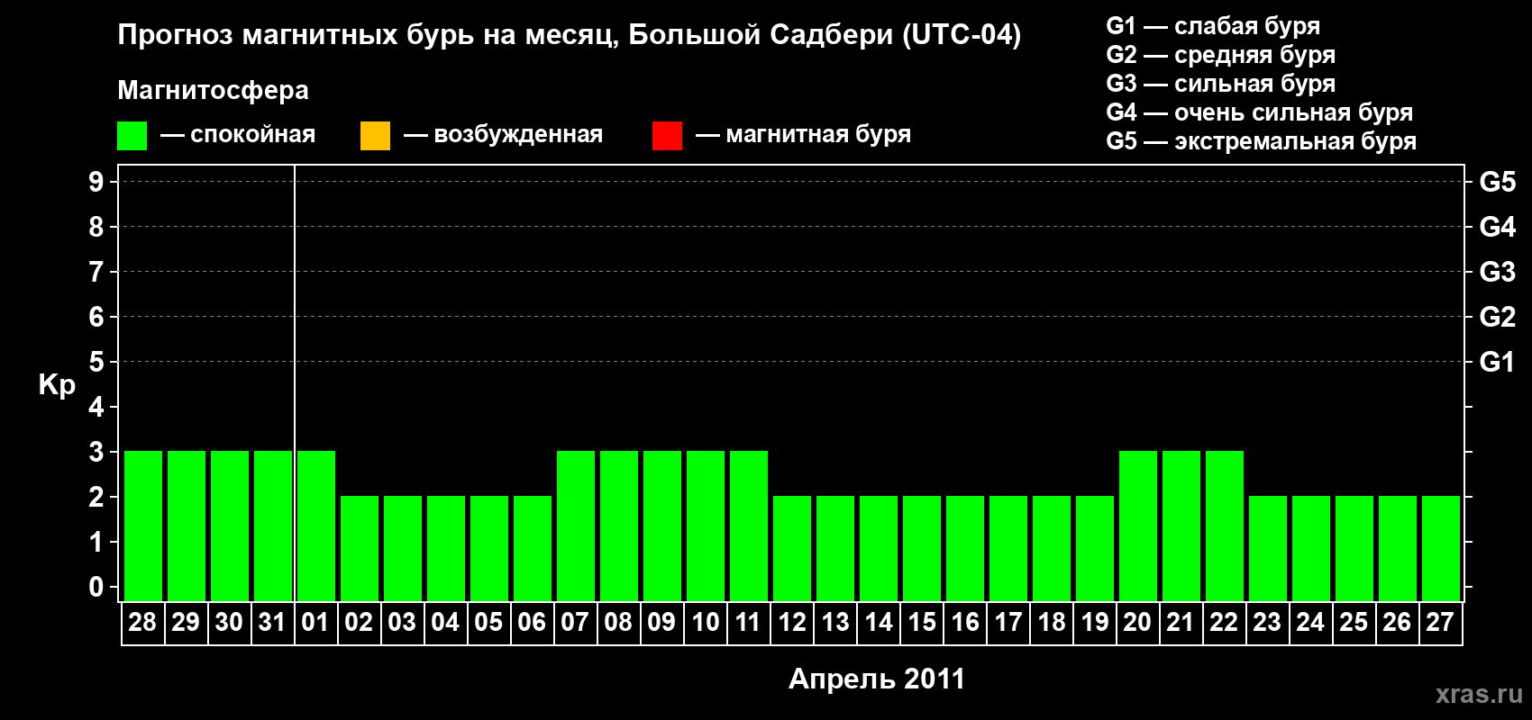 Прогноз магнитных бурь Большом Садбери — 28 марта 2011 года