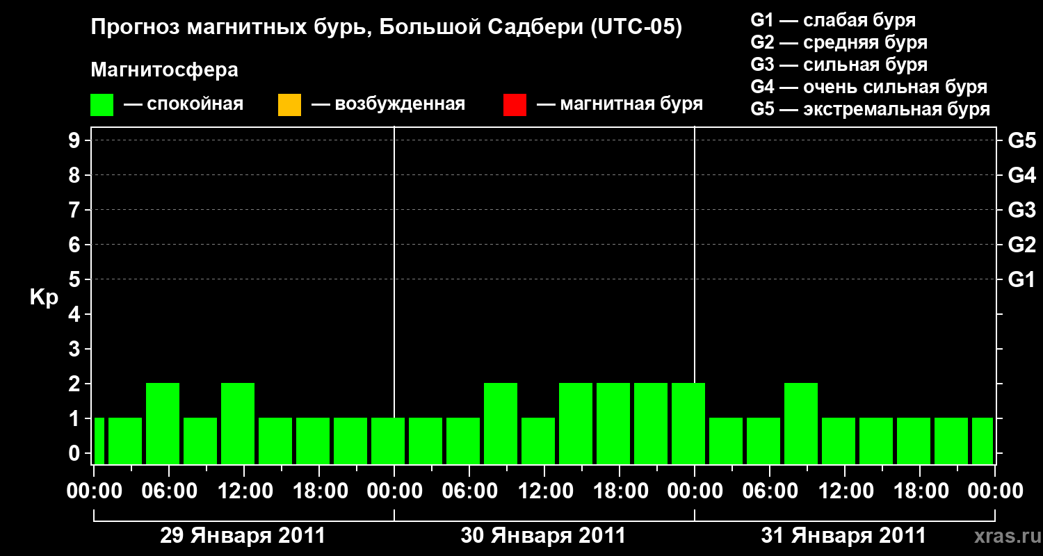 Прогноз магнитных бурь Большом Садбери — 29 января 2011 года