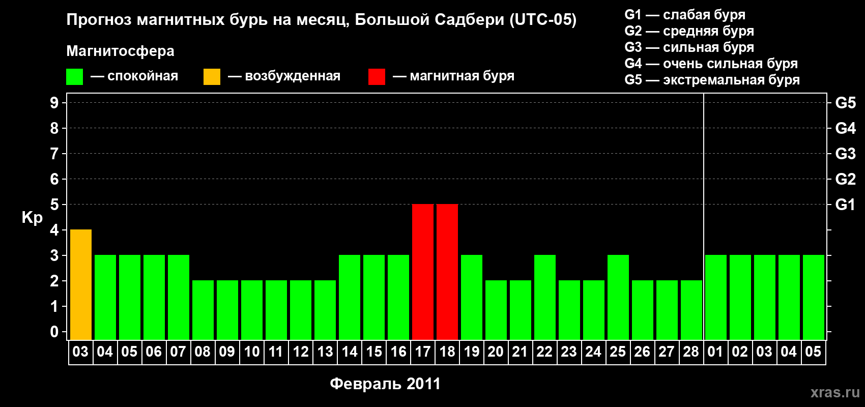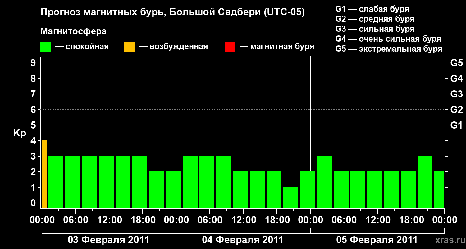 Прогноз магнитных бурь Большом Садбери — 3 февраля 2011 года