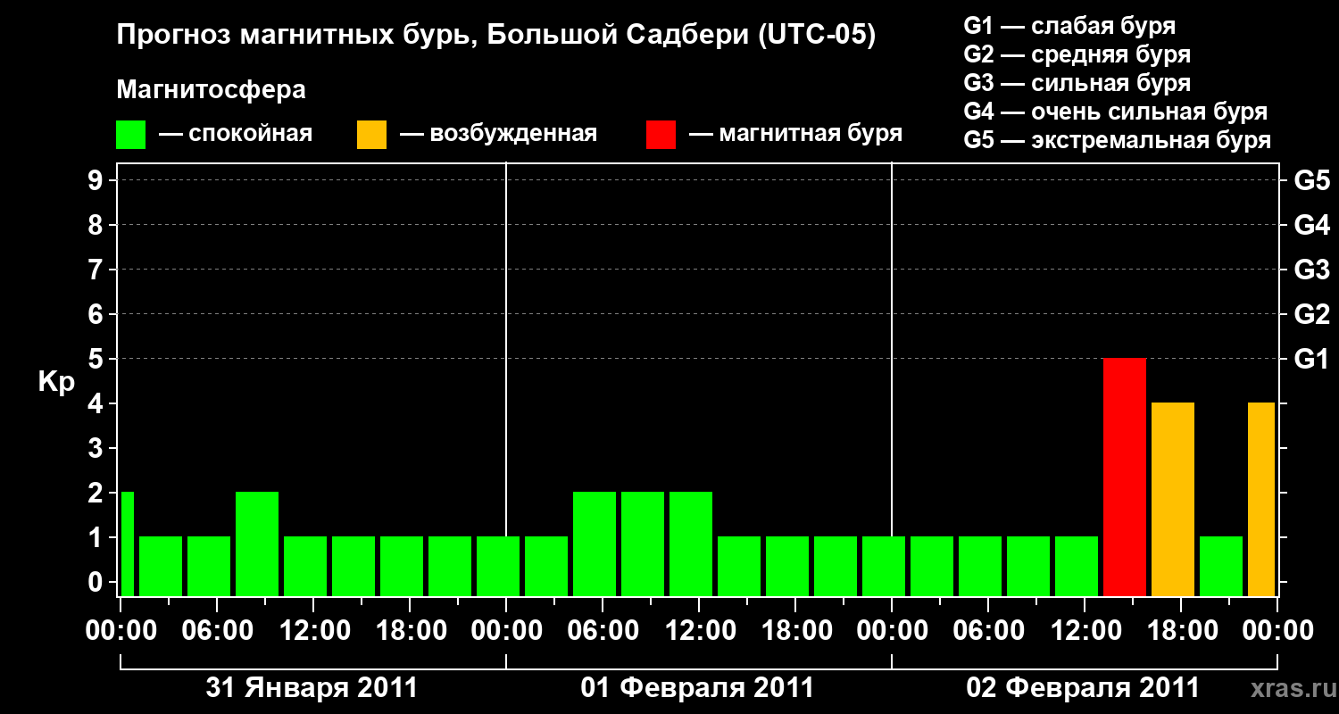 Прогноз магнитных бурь Большом Садбери — 31 января 2011 года