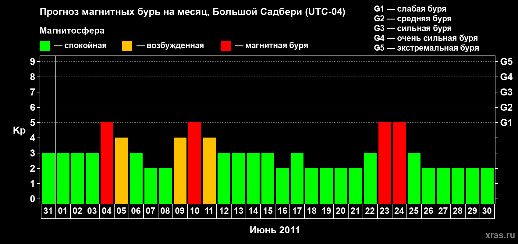 Прогноз магнитных бурь Большом Садбери — 31 мая 2011 года