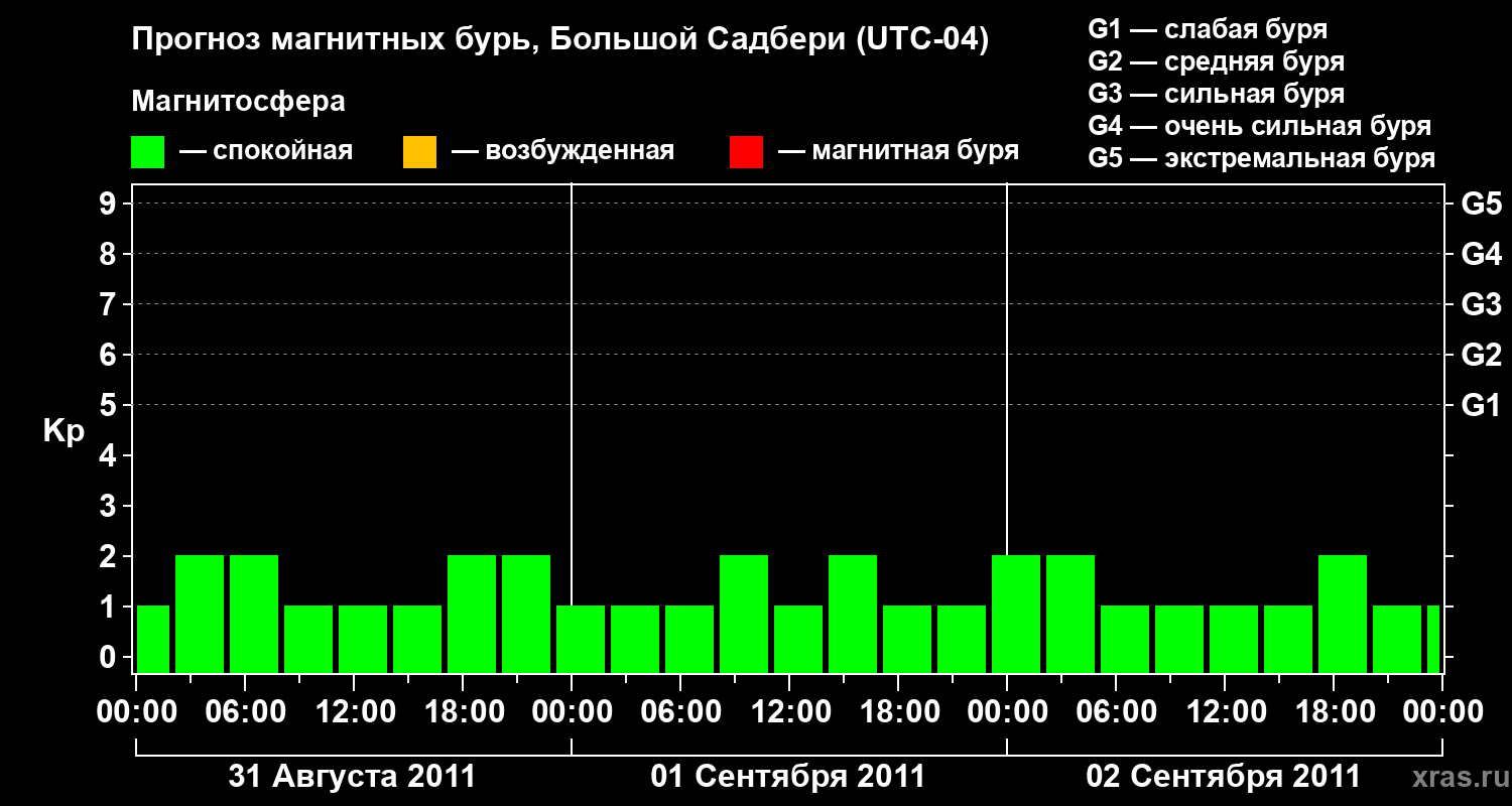 Прогноз магнитных бурь Большом Садбери — 31 августа 2011 года