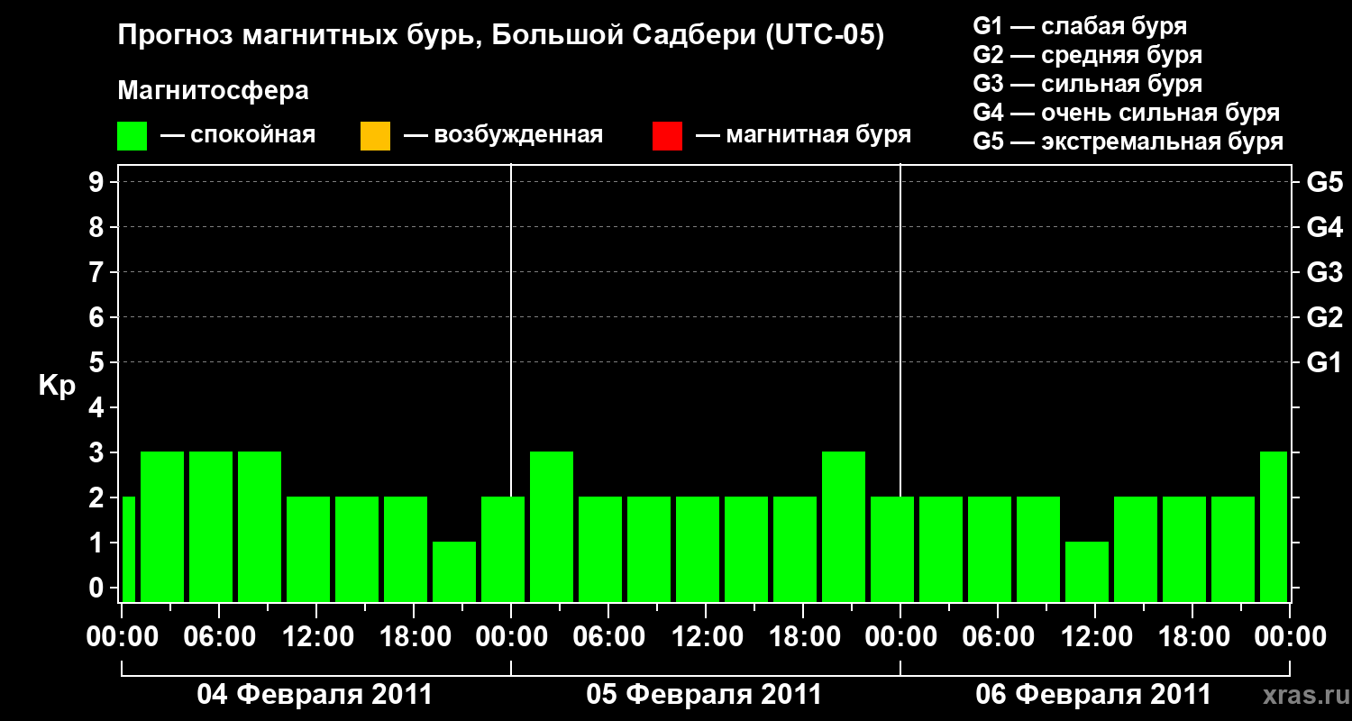 Прогноз магнитных бурь Большом Садбери — 4 февраля 2011 года