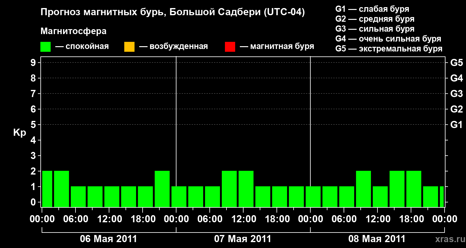 Прогноз магнитных бурь Большом Садбери — 6 мая 2011 года