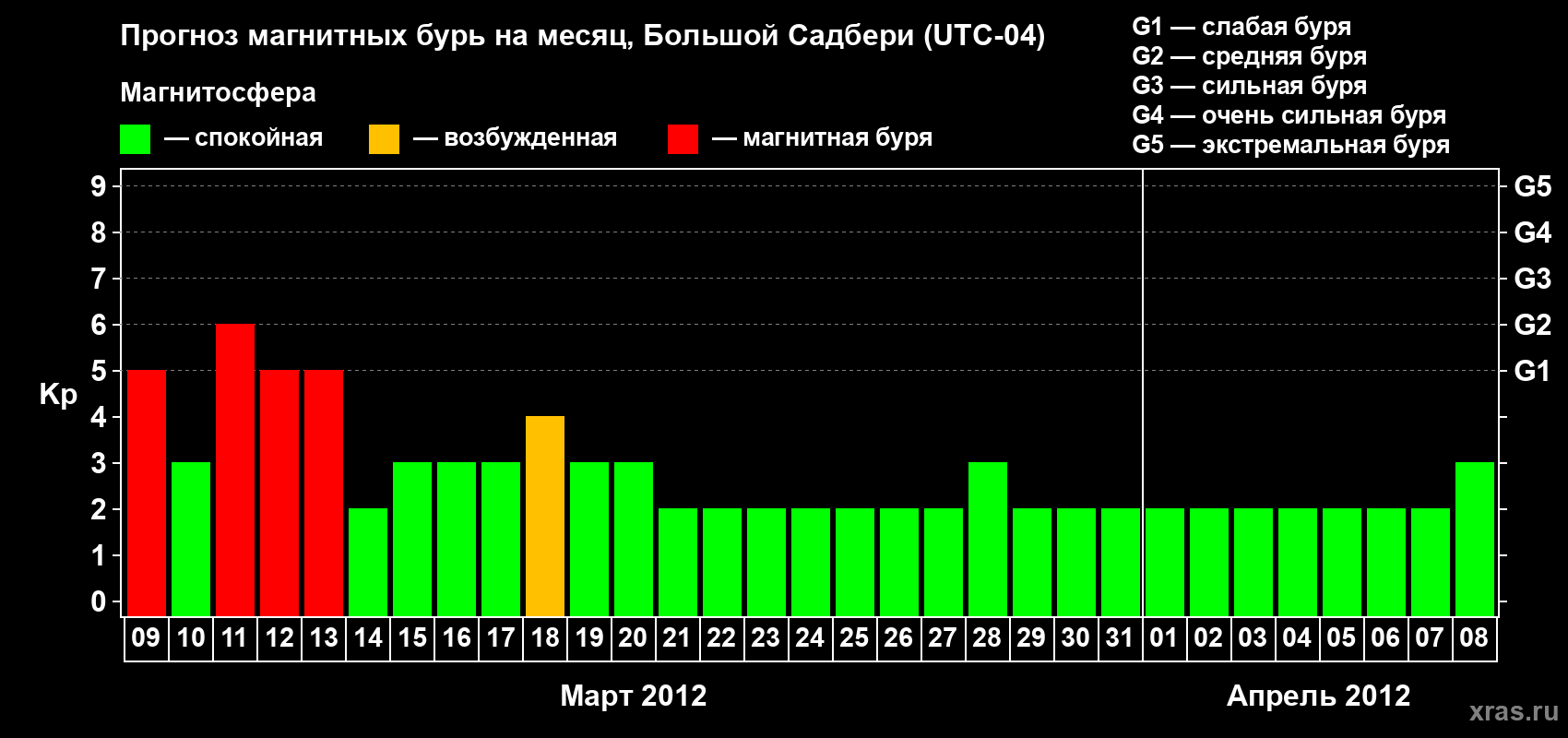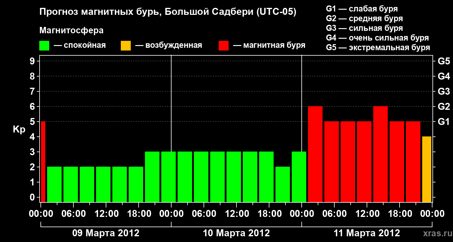 Прогноз магнитных бурь Большом Садбери — 9 марта 2012 года