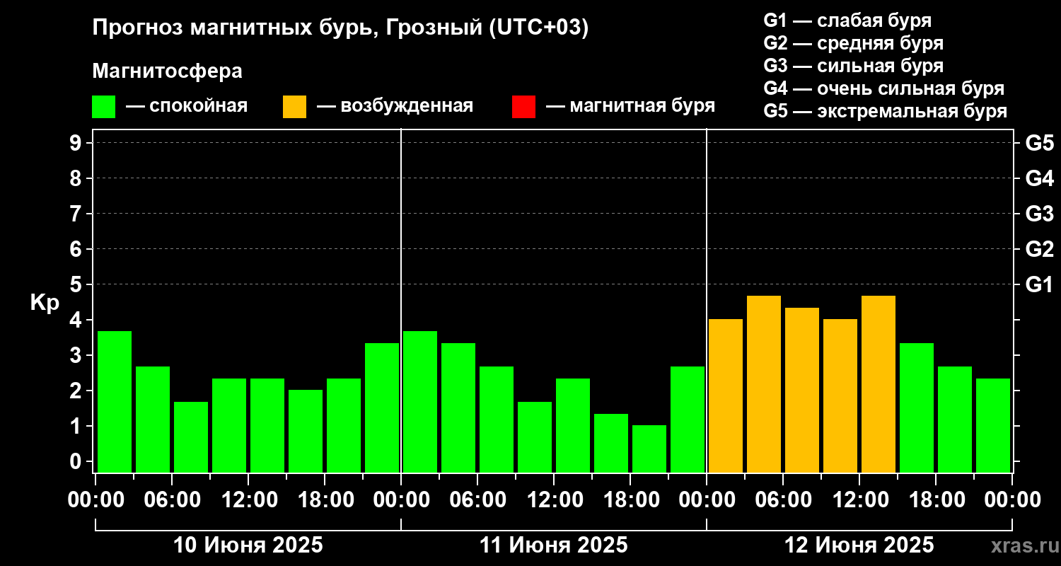 Прогноз магнитных бурь Грозном — 10 июня 2025 года