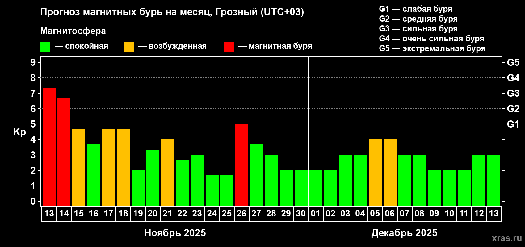 Прогноз магнитных бурь Грозном — 13 ноября 2025 года