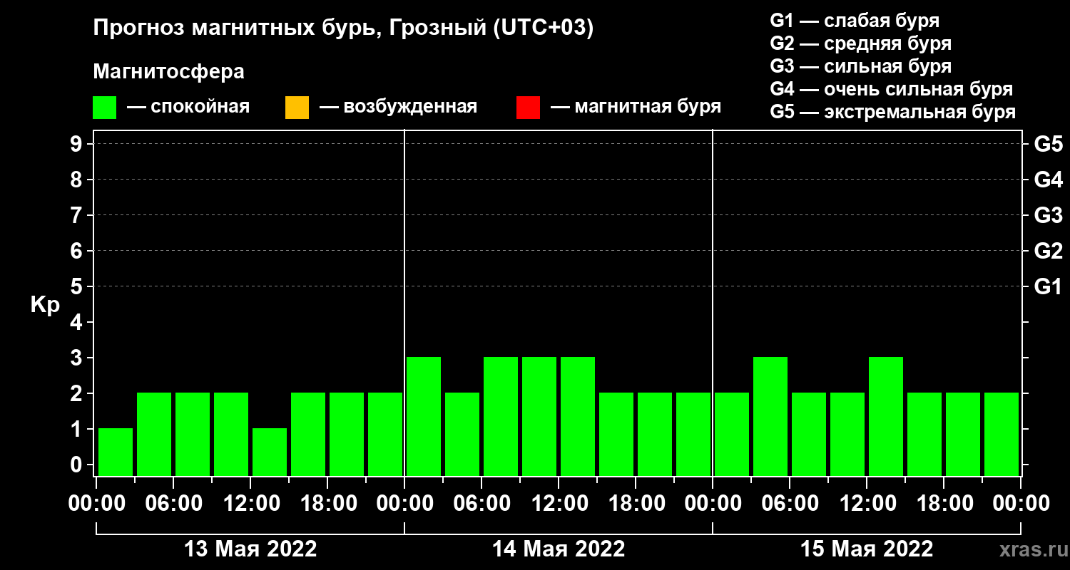 Прогноз магнитных бурь Грозном — 13 мая 2022 года