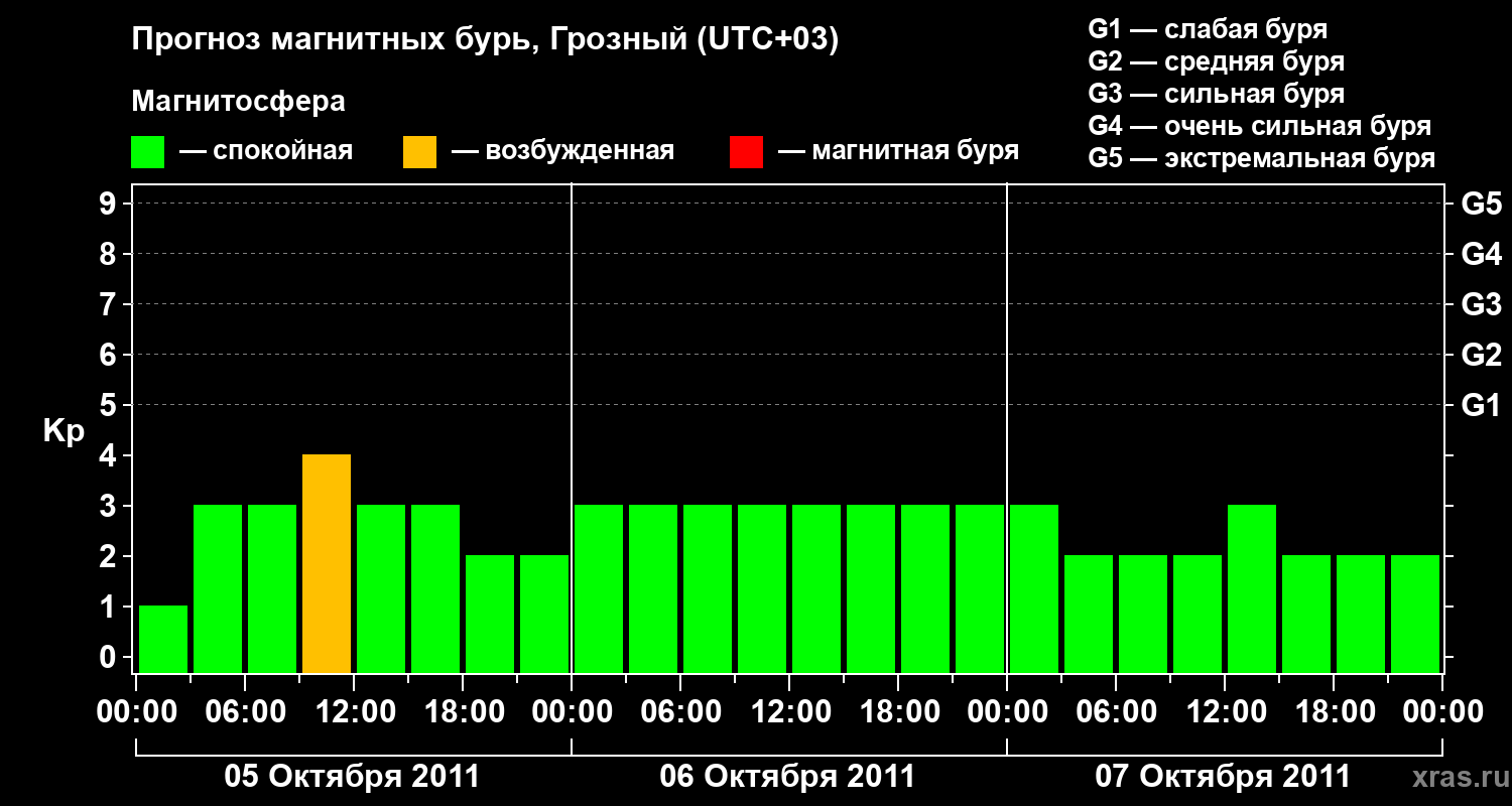 Прогноз магнитных бурь Грозном — 5 октября 2011 года