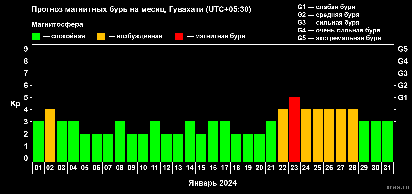 Прогноз магнитных бурь Гувахати — 1 января 2024 года