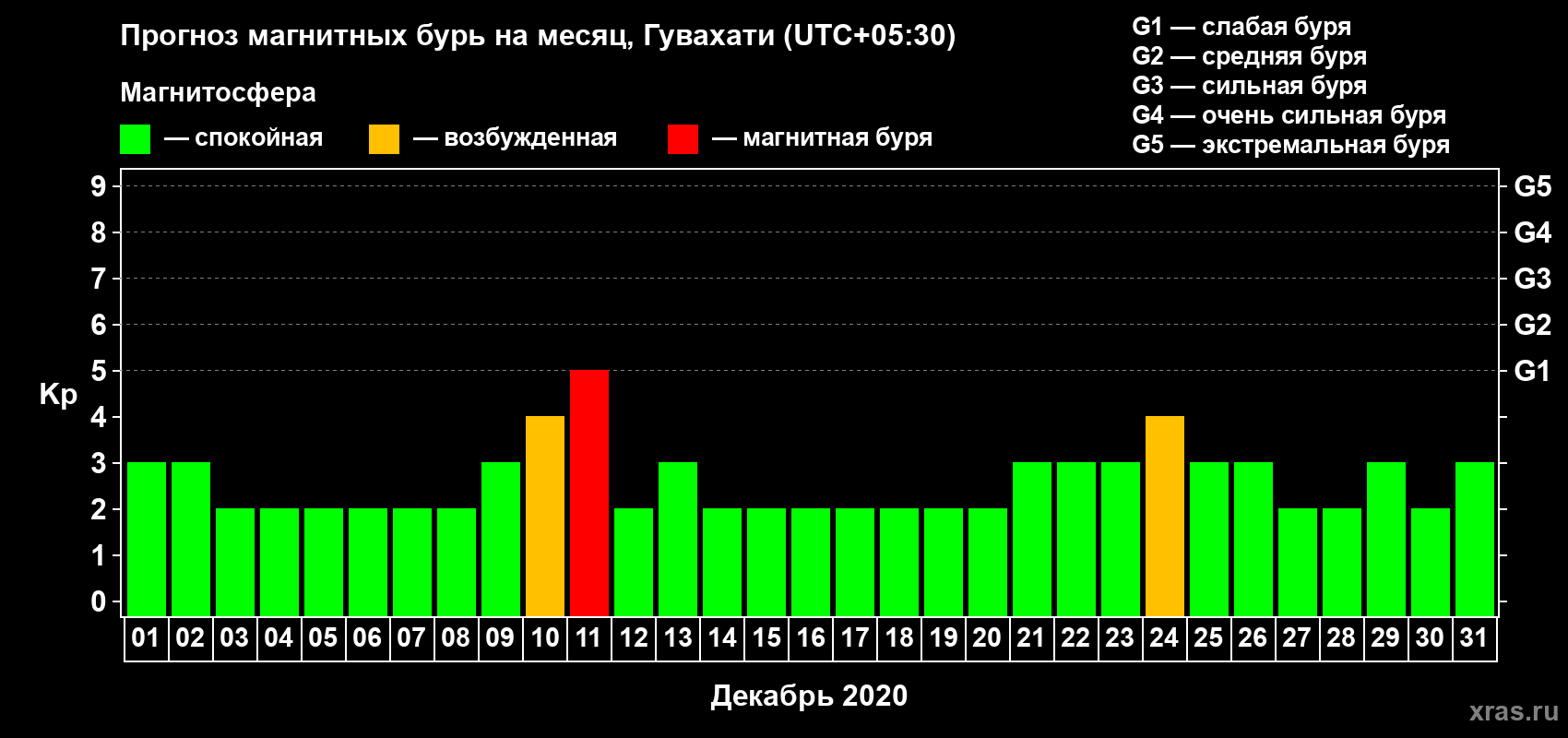 Прогноз магнитных бурь Гувахати на 1 декабря 2020 года