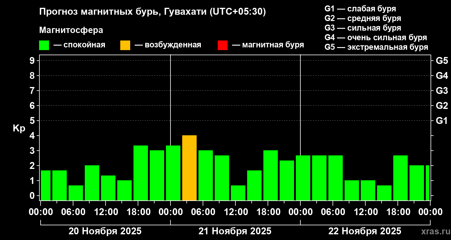 Прогноз магнитных бурь Гувахати на 20 ноября 2025 года