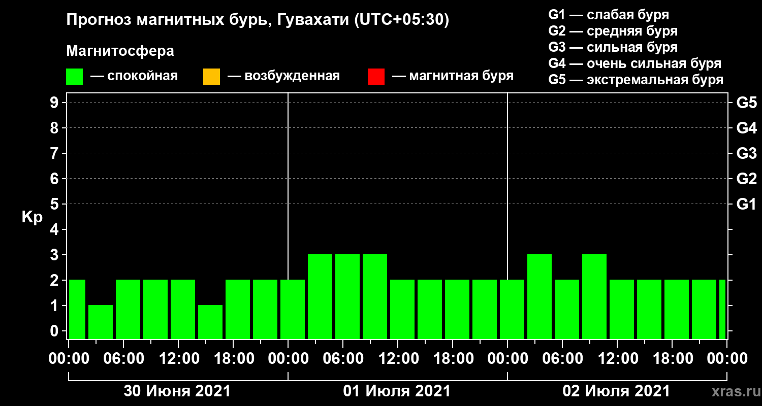 Прогноз магнитных бурь Гувахати — 30 июня 2021 года