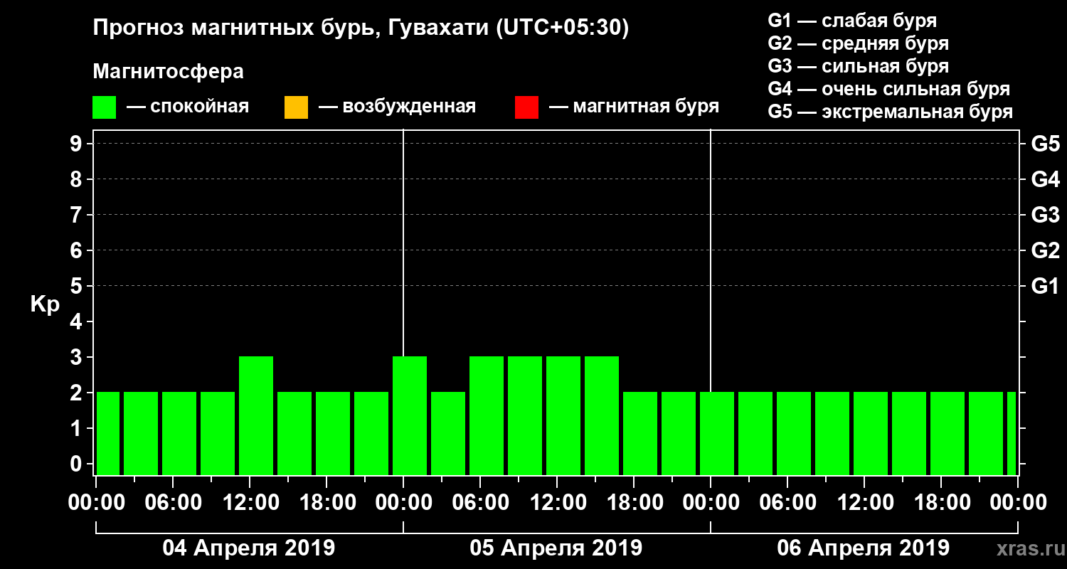 Прогноз магнитных бурь Гувахати на 4 апреля 2019 года