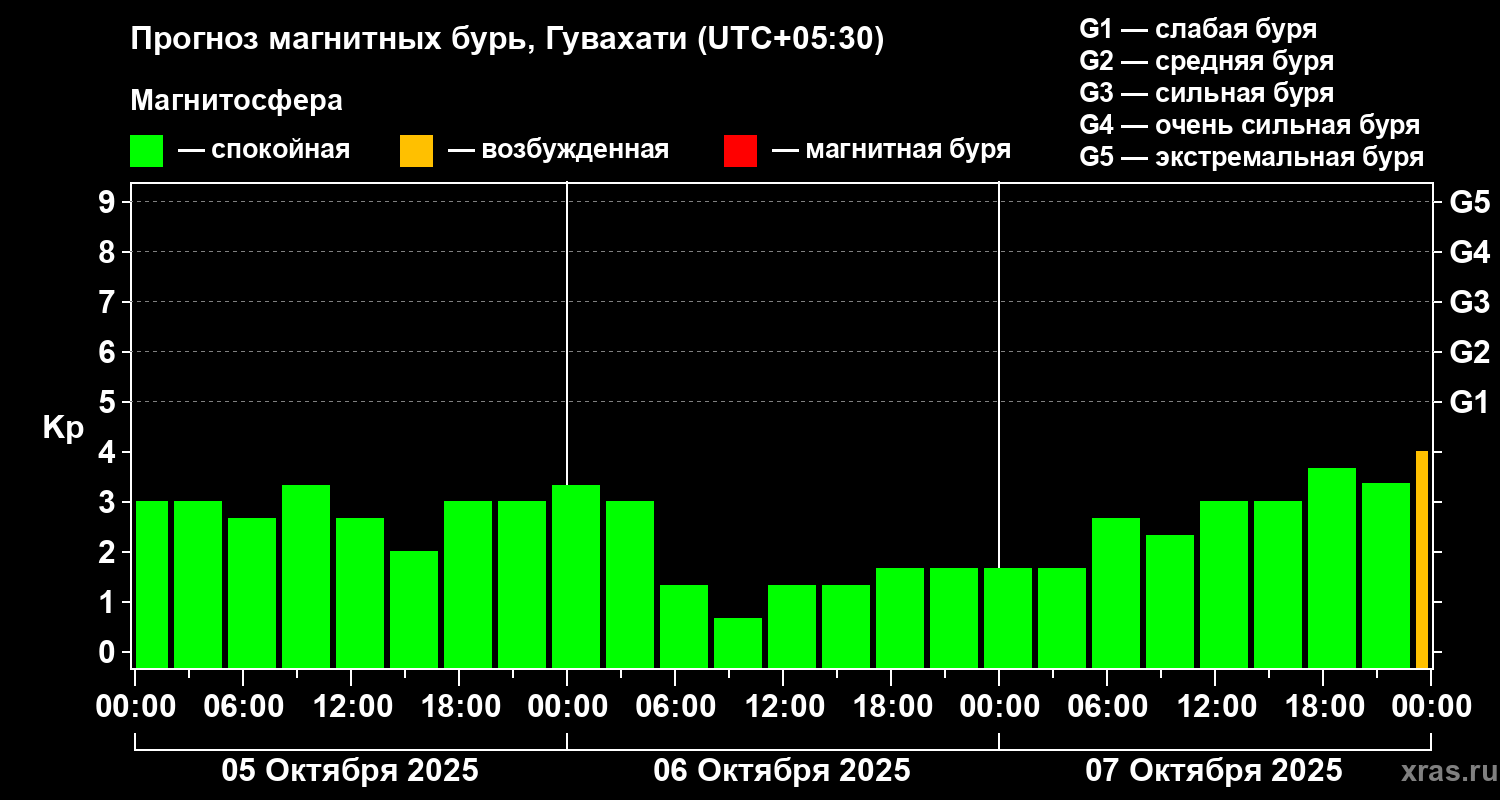 Прогноз магнитных бурь Гувахати — 5 октября 2025 года