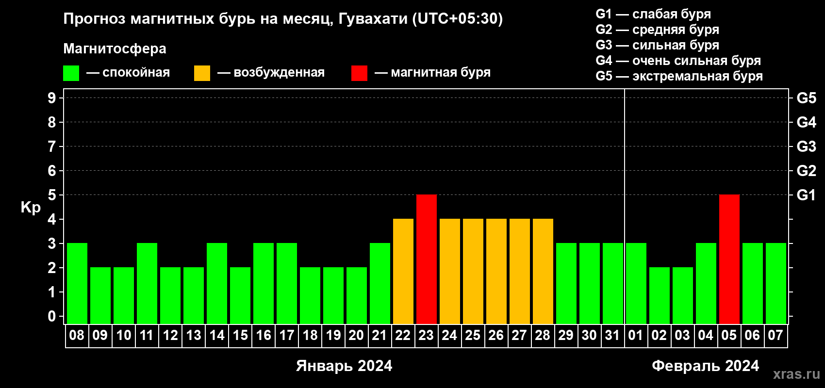 Прогноз магнитных бурь Гувахати — 8 января 2024 года