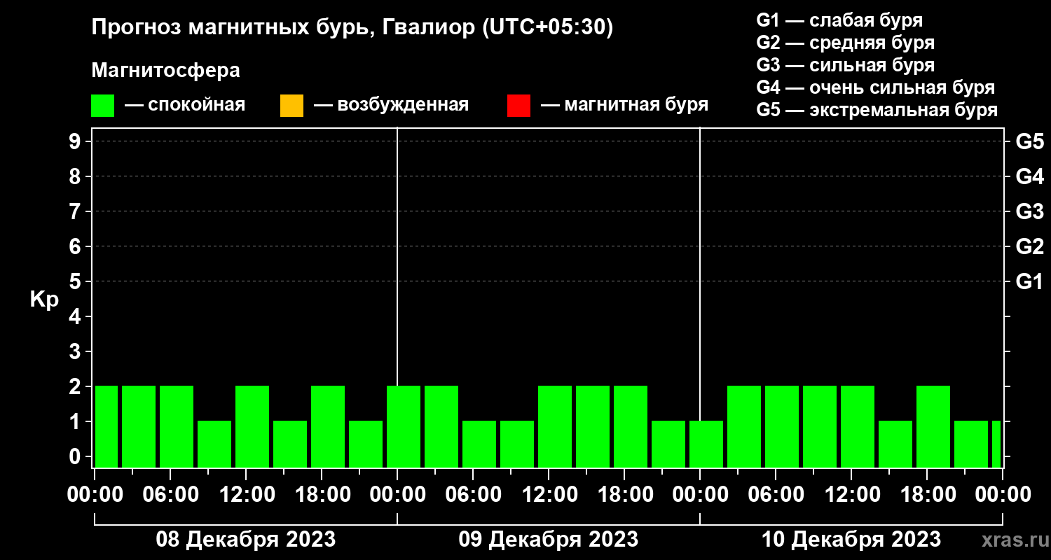 Прогноз магнитных бурь в Гвалиоре — 8 декабря 2023 года