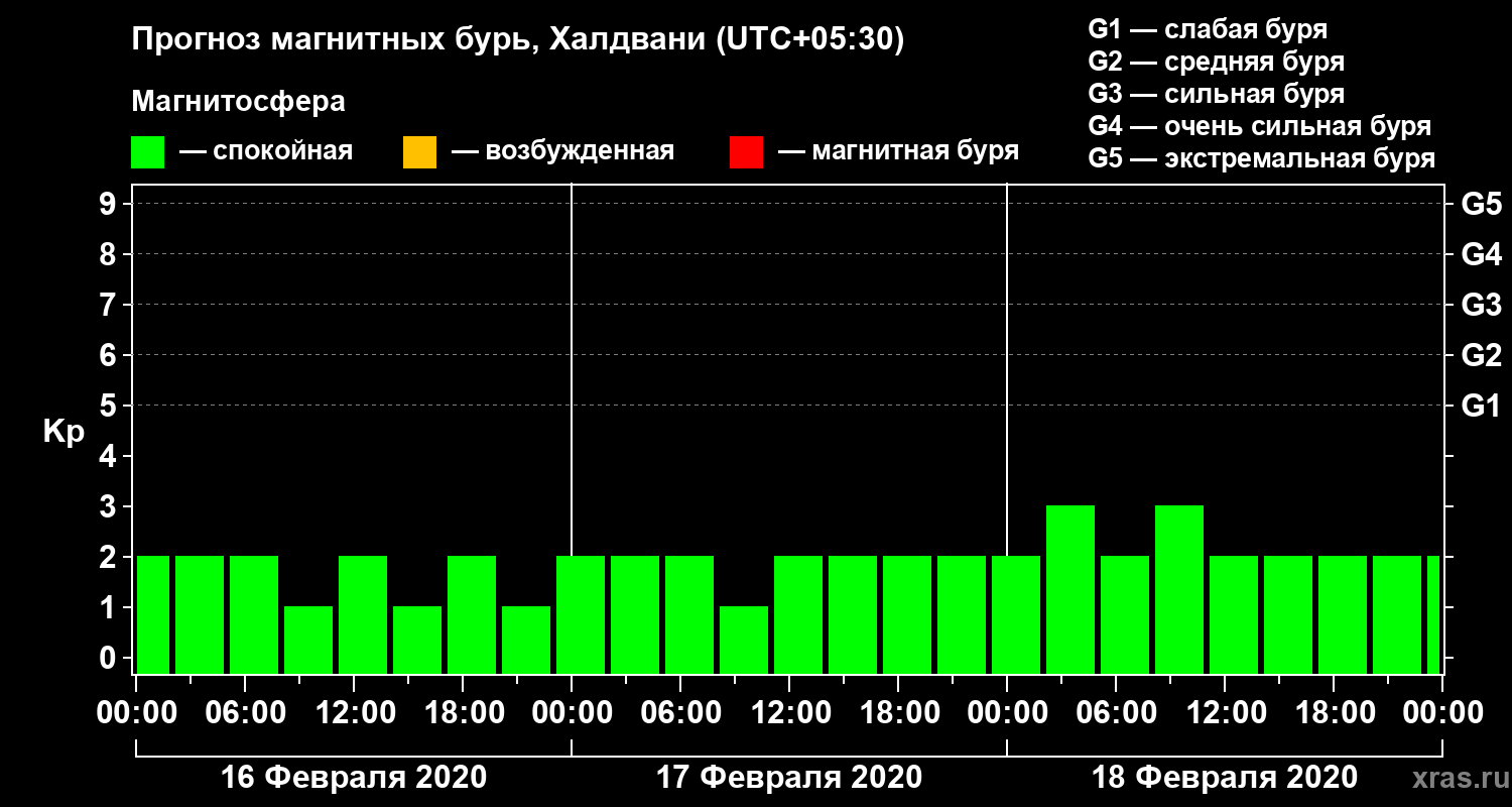Прогноз магнитных бурь Халдвани на 16 февраля 2020 года