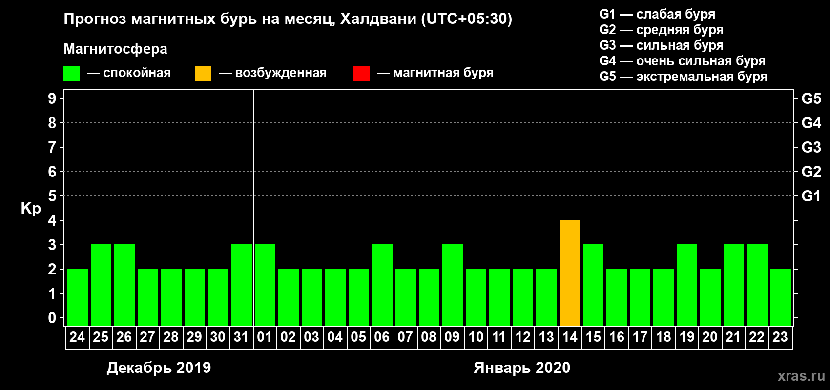 Прогноз магнитных бурь Халдвани на 24 декабря 2019 года