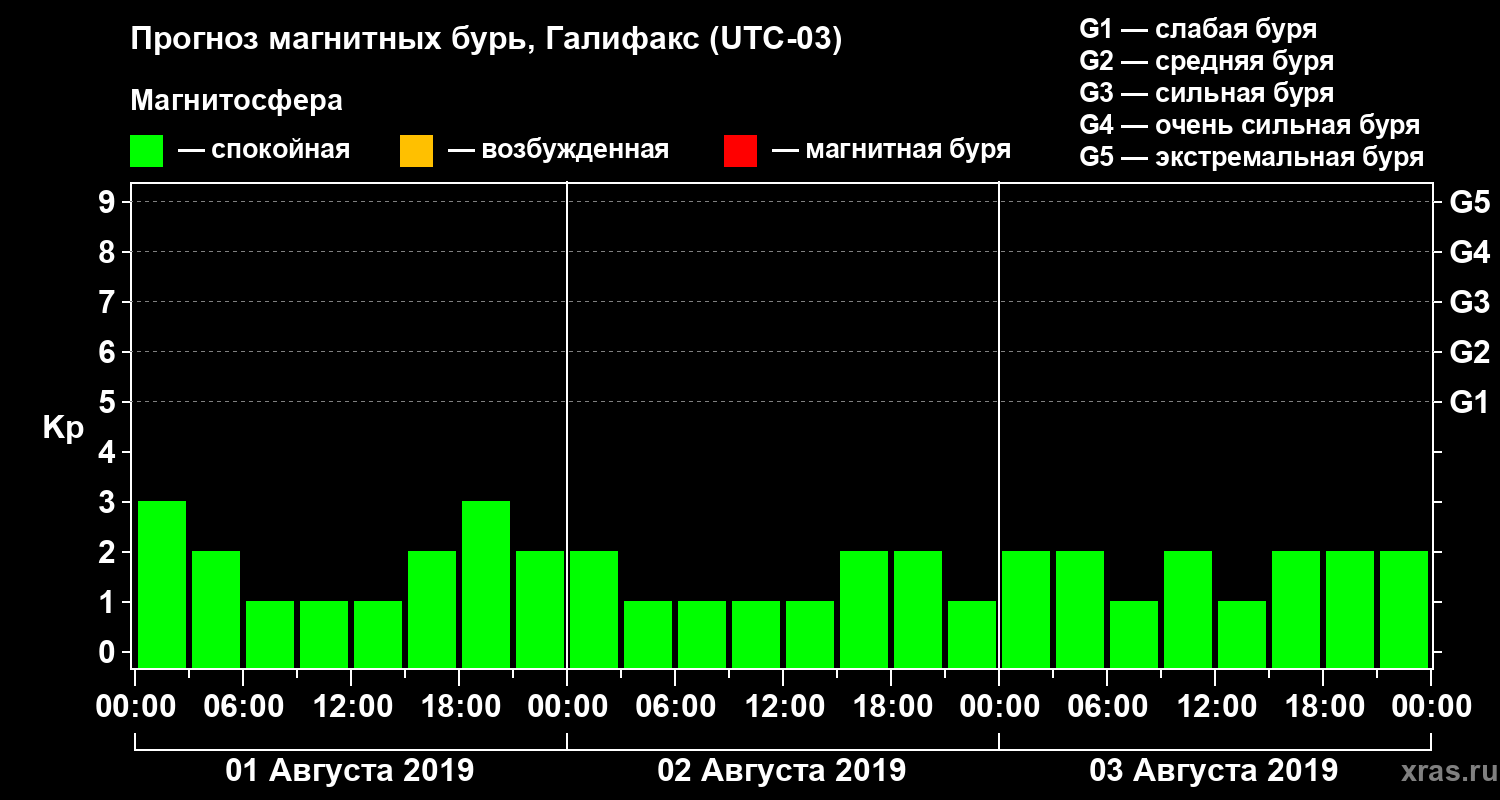Прогноз магнитных бурь в Галифаксе на 1 августа 2019 года