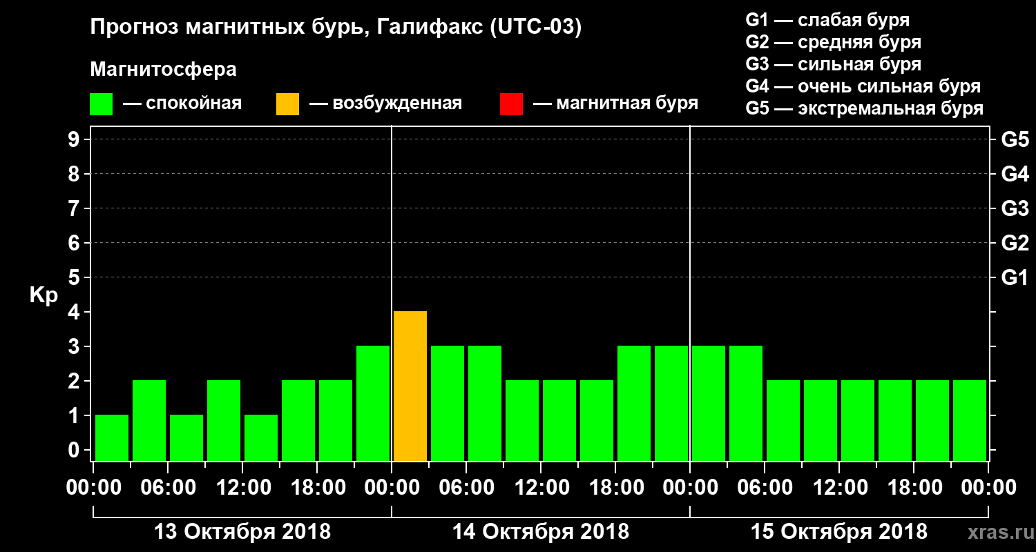 Прогноз магнитных бурь в Галифаксе на 13 октября 2018 года