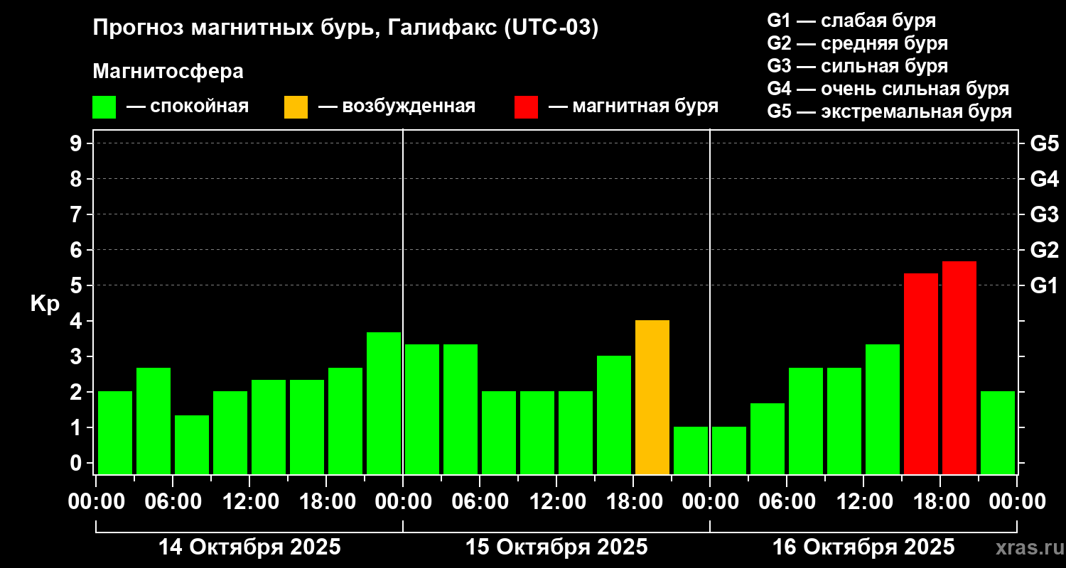 Прогноз магнитных бурь в Галифаксе — 14 октября 2025 года