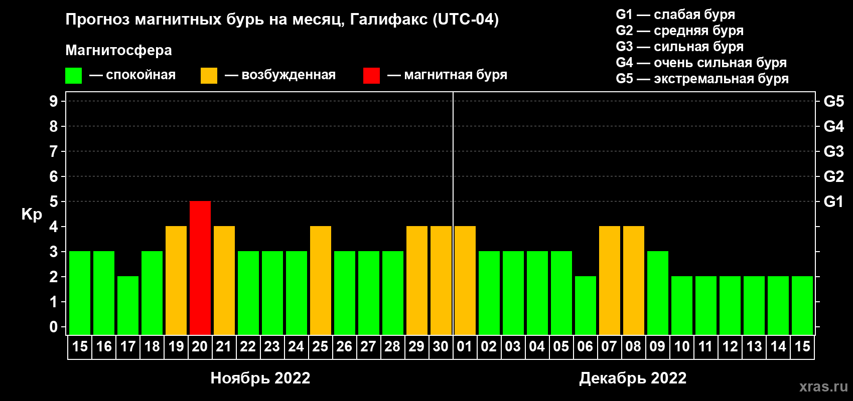 Прогноз магнитных бурь в Галифаксе — 15 ноября 2022 года