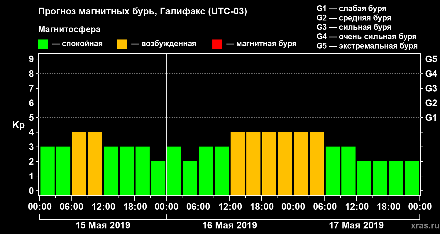 Прогноз магнитных бурь в Галифаксе — 15 мая 2019 года