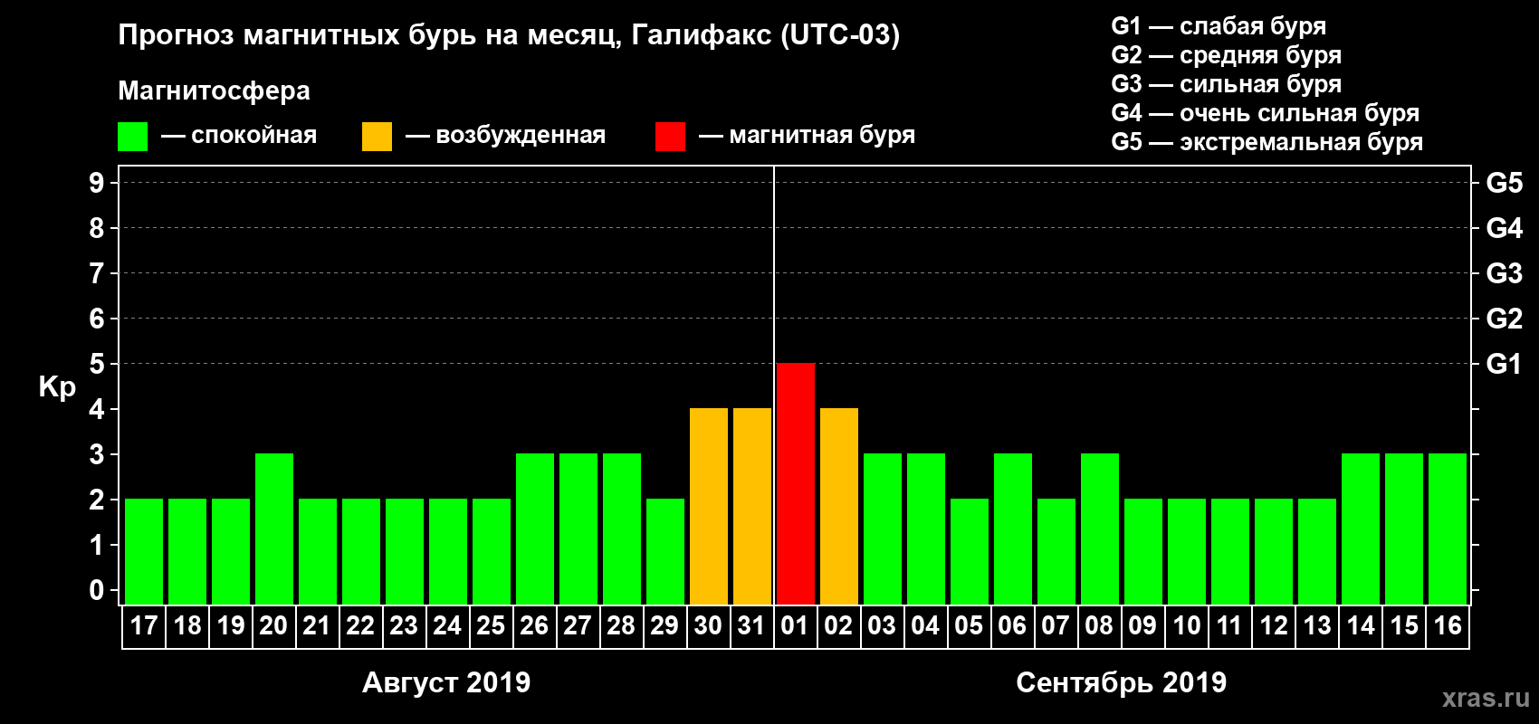 Прогноз магнитных бурь в Галифаксе — 17 августа 2019 года