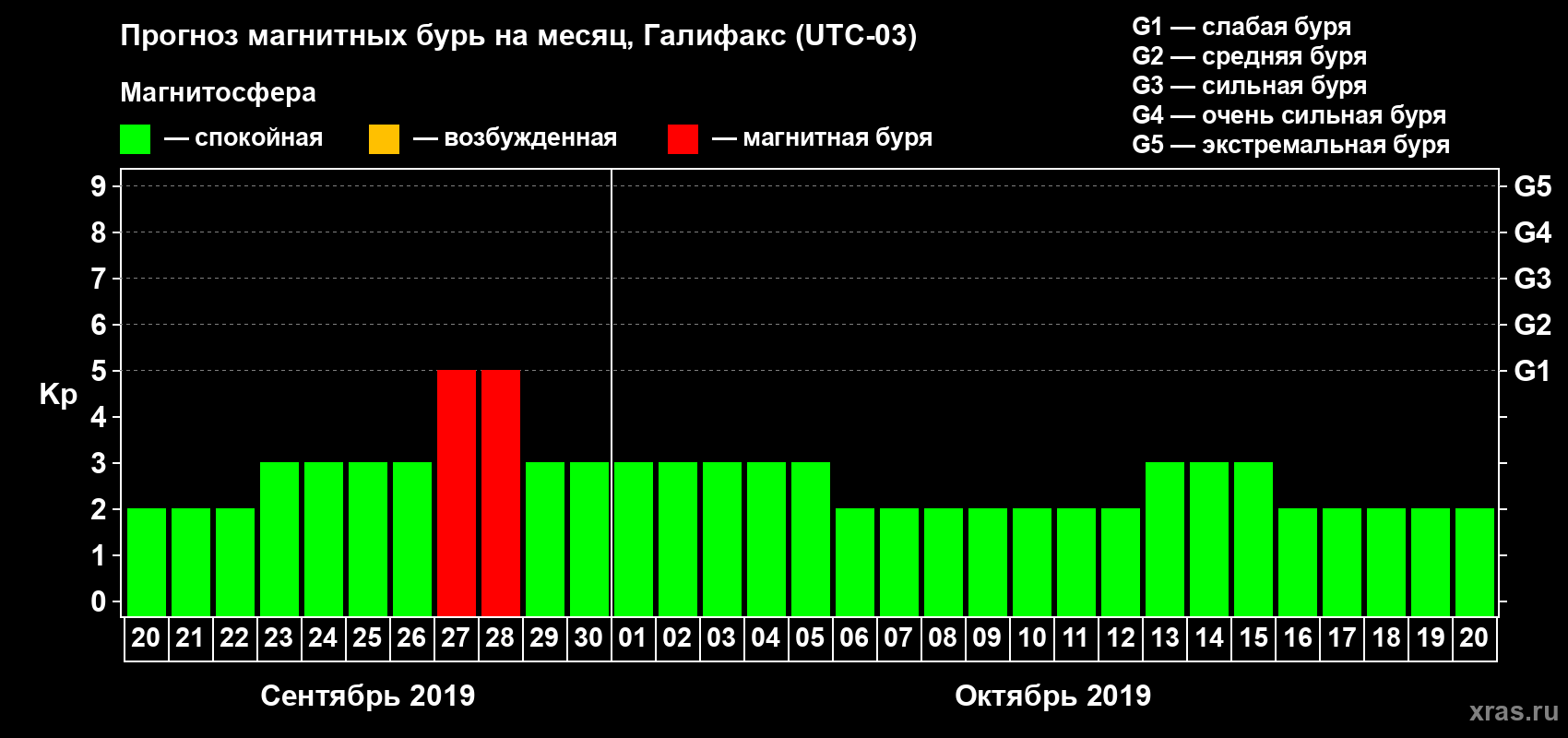 Прогноз магнитных бурь в Галифаксе — 20 сентября 2019 года