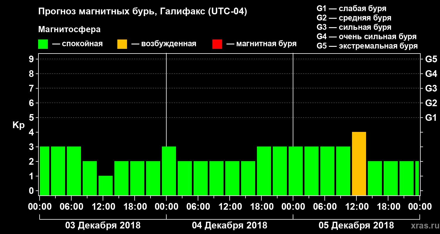 Прогноз магнитных бурь в Галифаксе — 3 декабря 2018 года