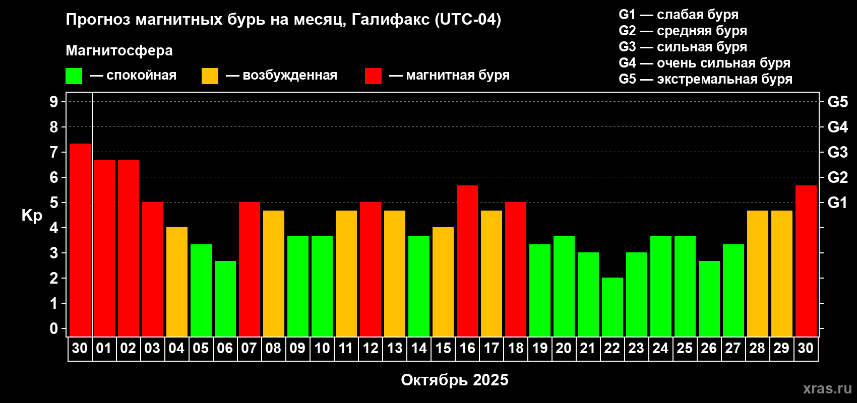 Прогноз магнитных бурь в Галифаксе — 30 сентября 2025 года