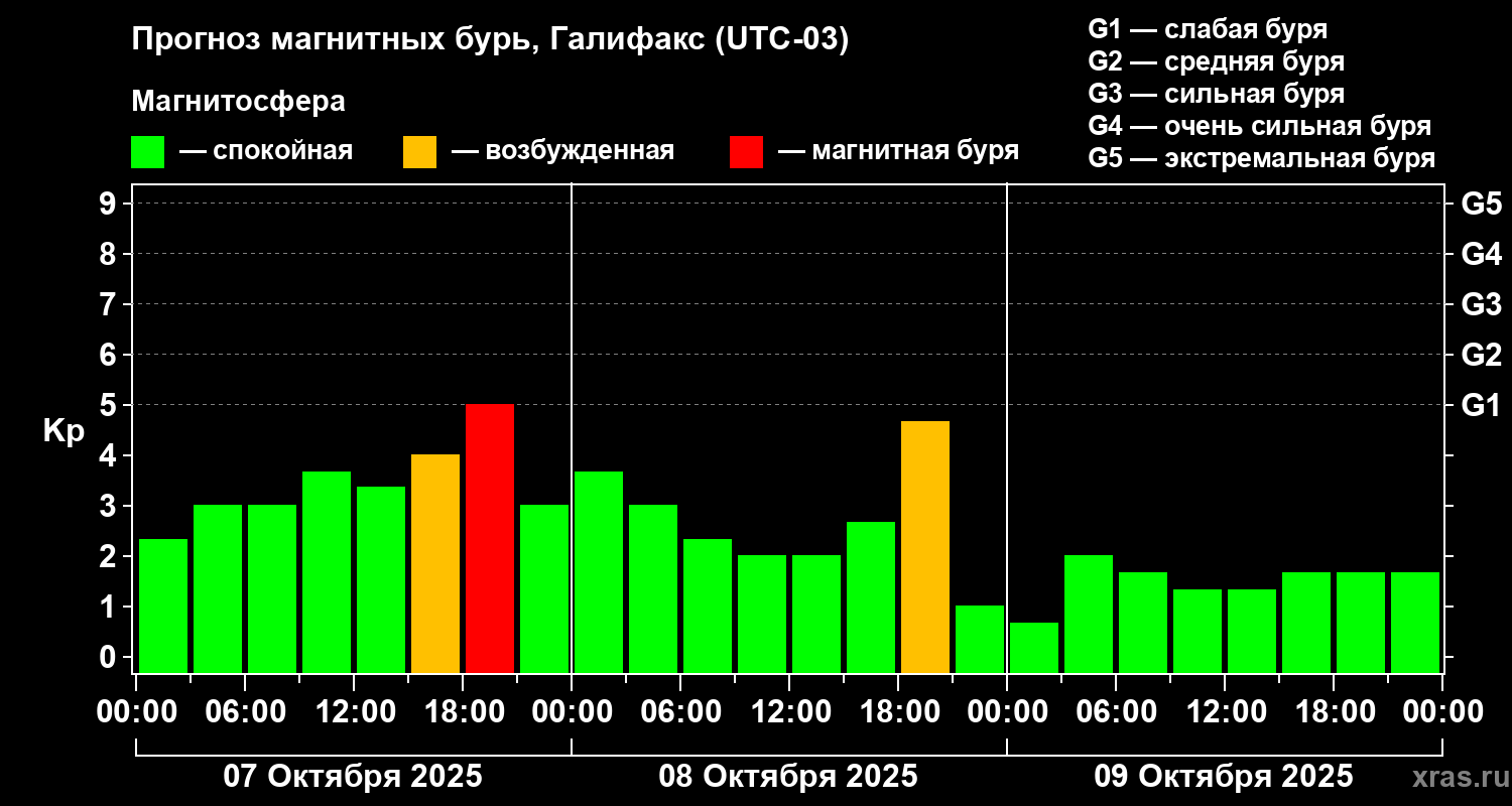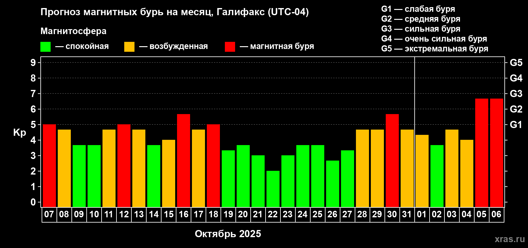 Прогноз магнитных бурь в Галифаксе — 7 октября 2025 года