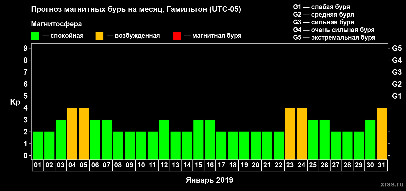 Прогноз магнитных бурь в Гамильтоне — 1 января 2019 года