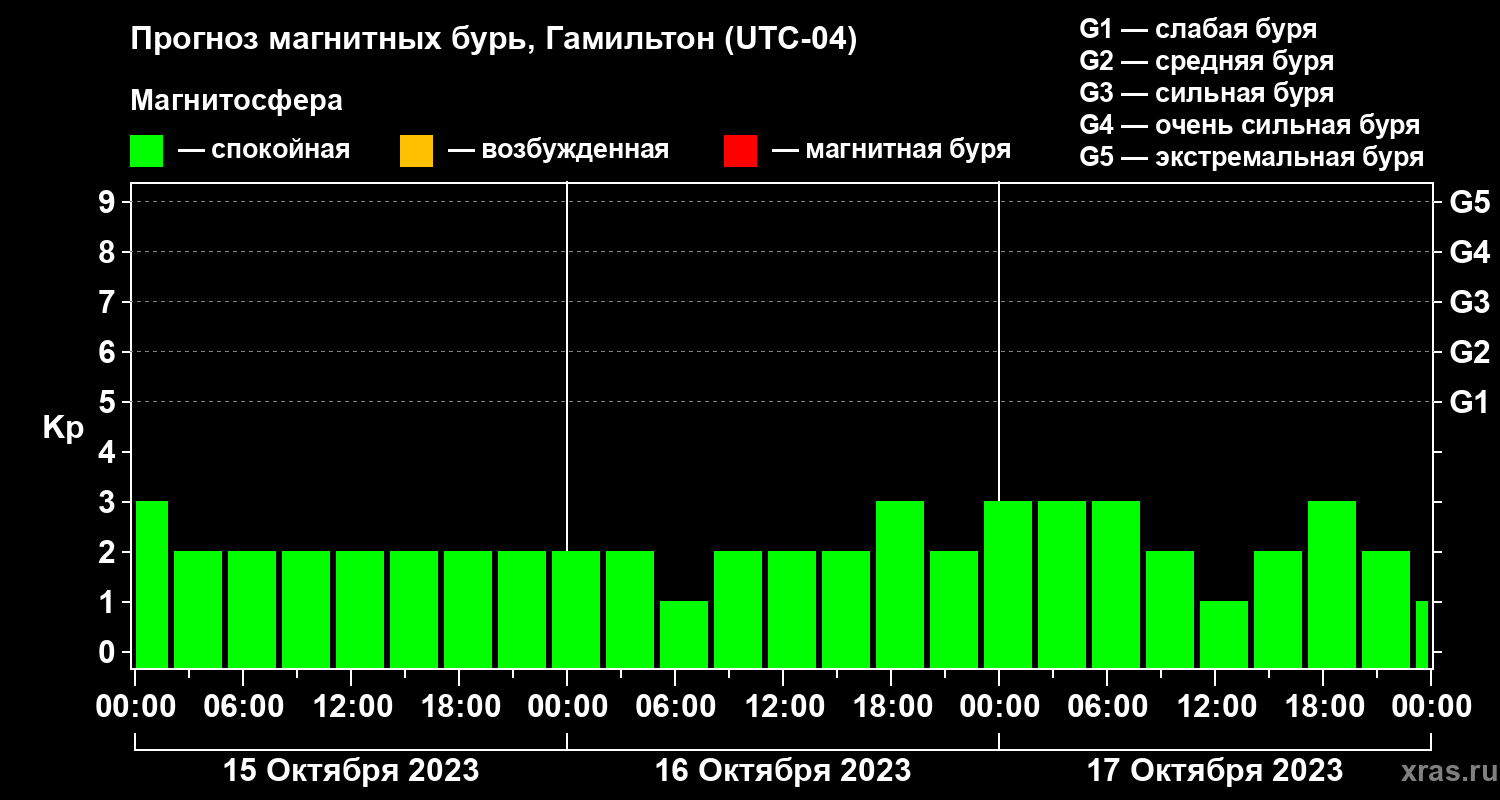 Прогноз магнитных бурь в Гамильтоне на 15 октября 2023 года