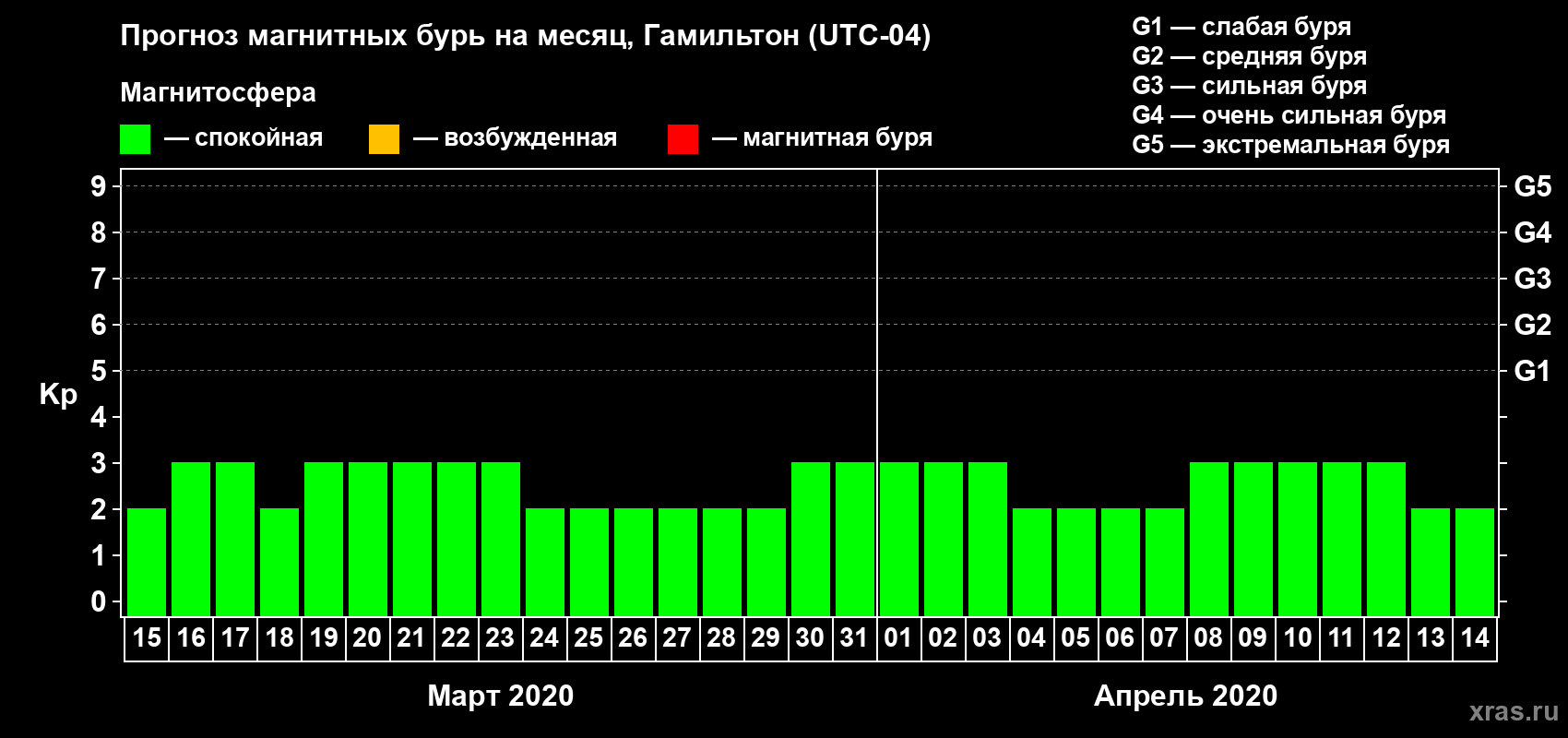 Прогноз магнитных бурь в Гамильтоне — 15 марта 2020 года