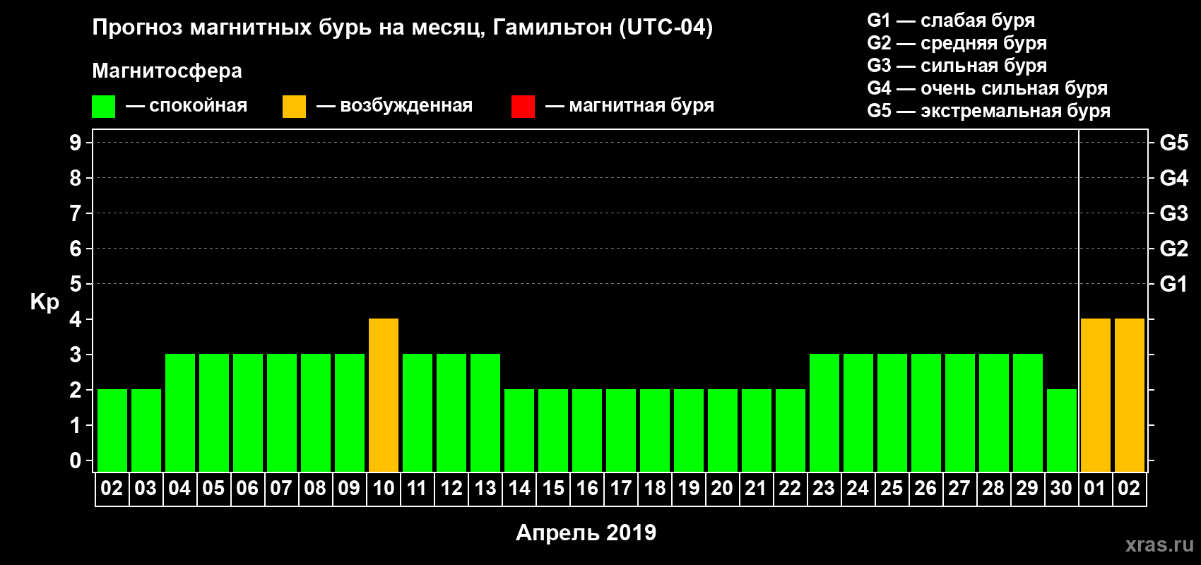Прогноз магнитных бурь в Гамильтоне — 2 апреля 2019 года
