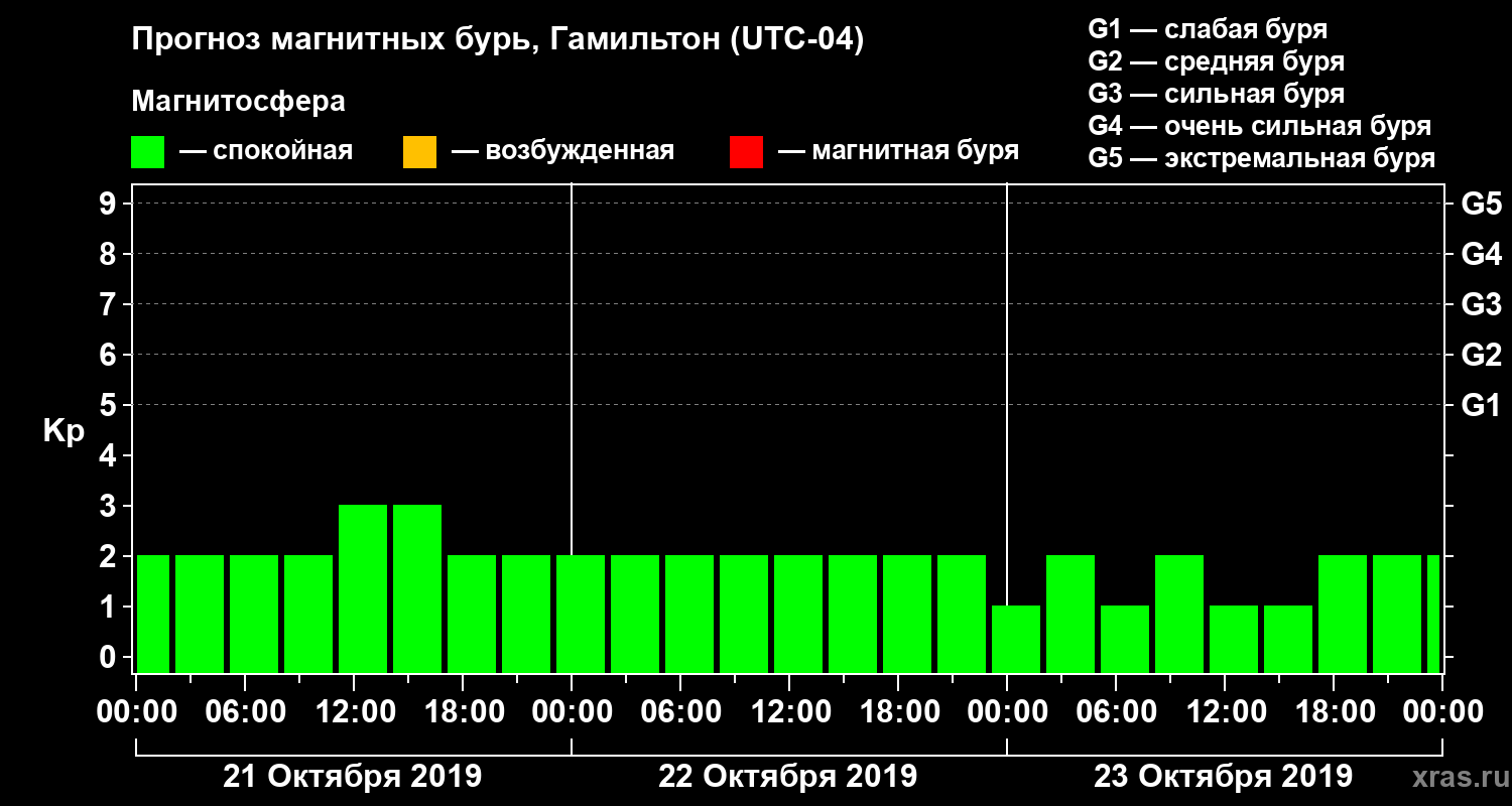 Прогноз магнитных бурь в Гамильтоне — 21 октября 2019 года