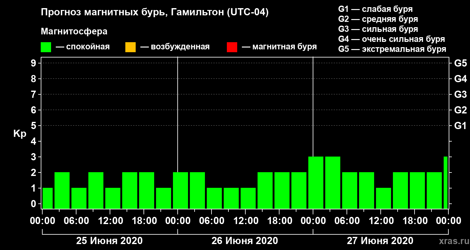 Прогноз магнитных бурь в Гамильтоне на 25 июня 2020 года