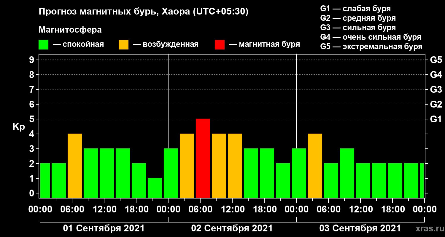 Прогноз магнитных бурь в Хаоре — 1 сентября 2021 года