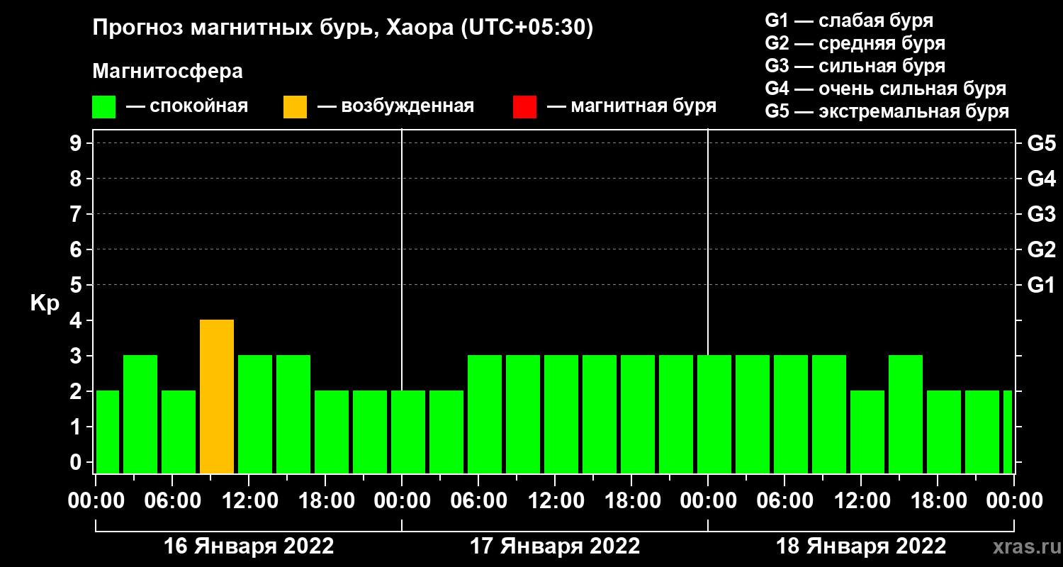Прогноз магнитных бурь в Хаоре на 16 января 2022 года