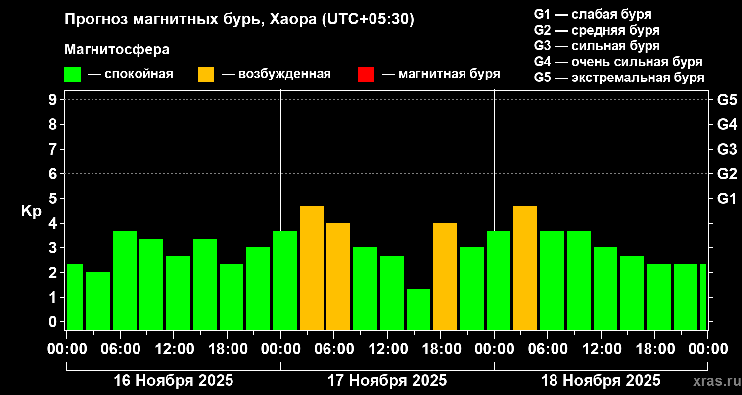 Прогноз магнитных бурь в Хаоре — 16 ноября 2025 года