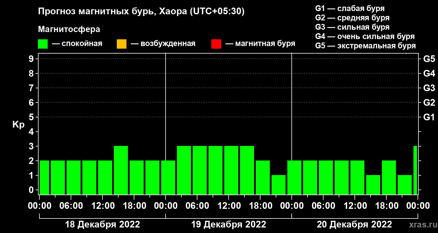 Прогноз магнитных бурь в Хаоре на 18 декабря 2022 года